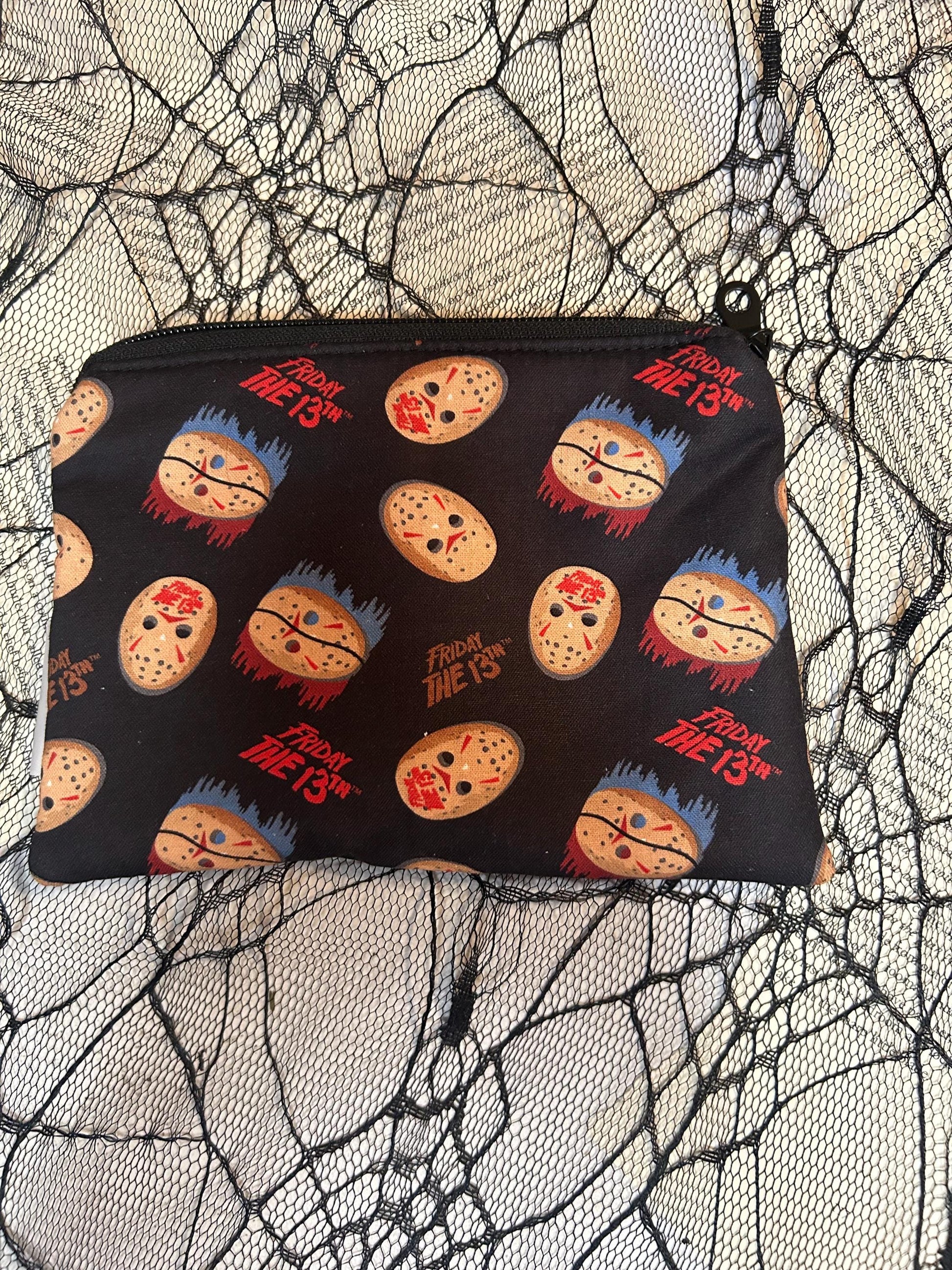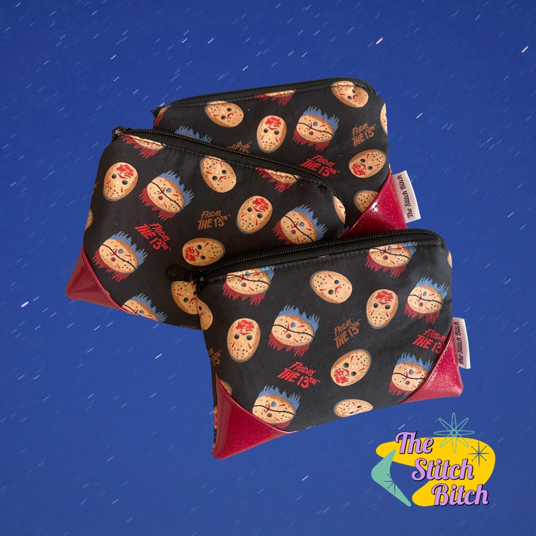 Go beyond the limits of horror with the Jason Voorhees Make Up Bag. This highly durable pouch features a strong zipper and stabilizers to keep all your horror makeup essentials safe and secure. It measures 5"x7" and can easily accommodate all your beauty products. Get it now to obtain a look that will send chills down your spine!